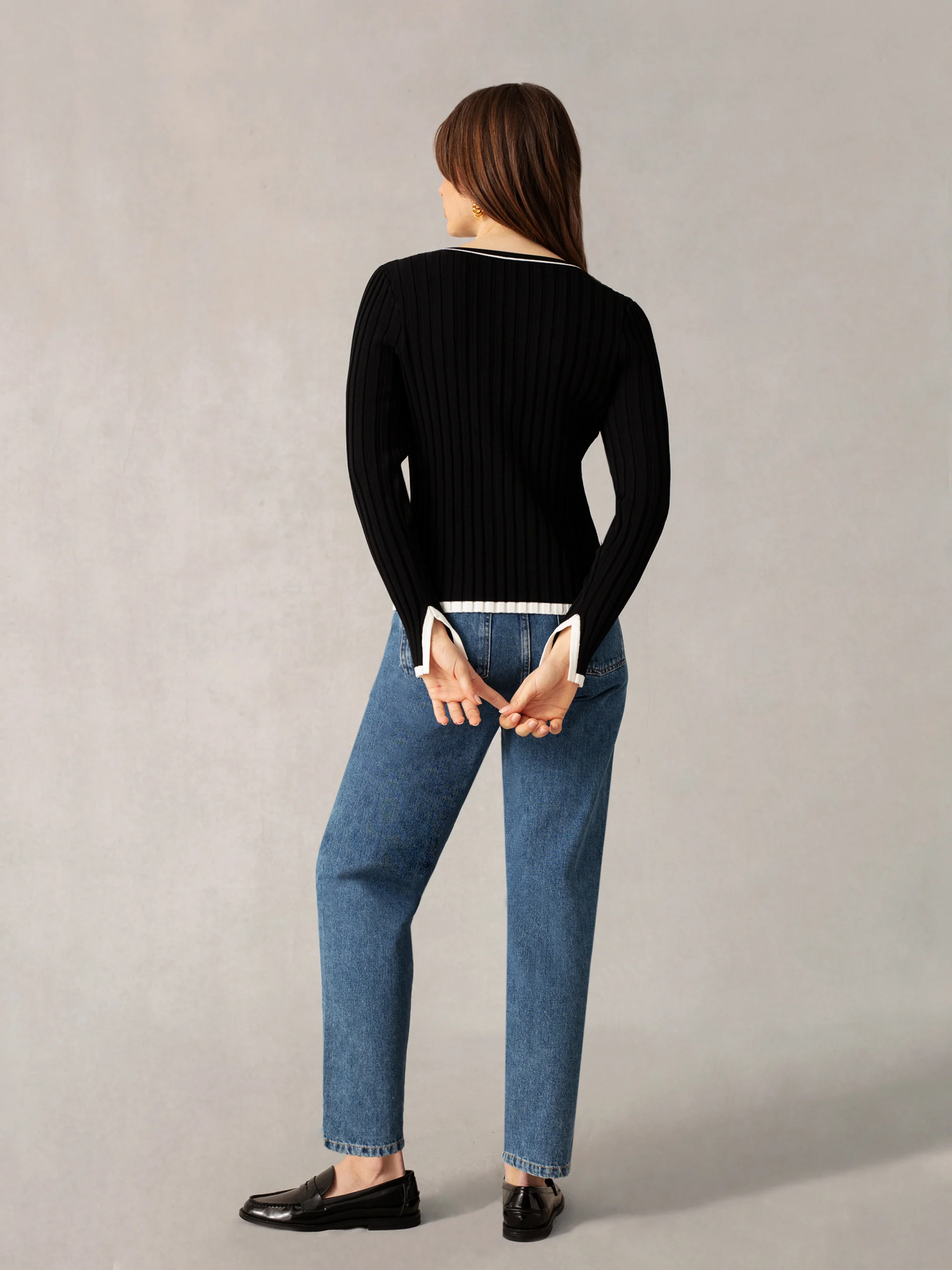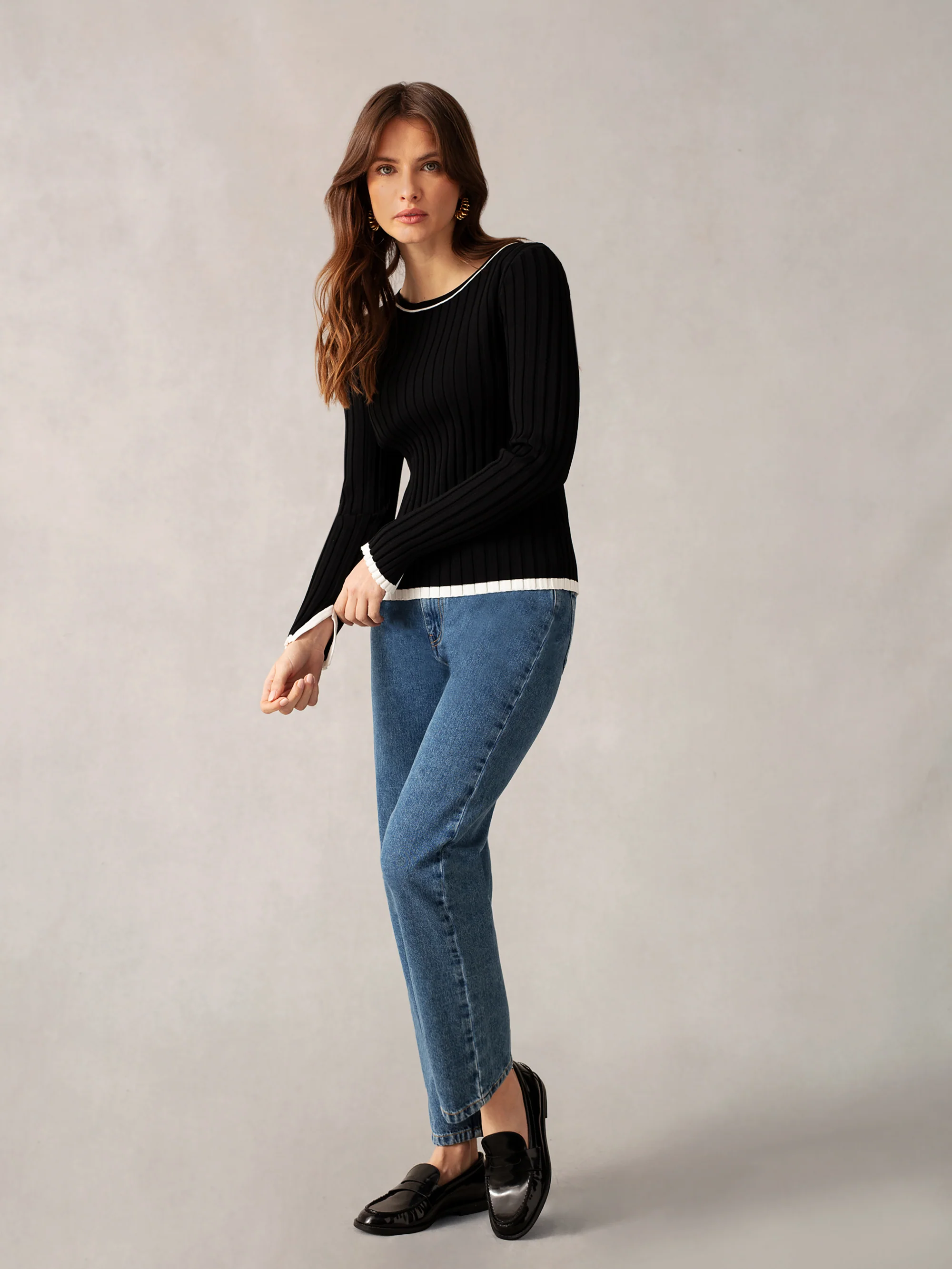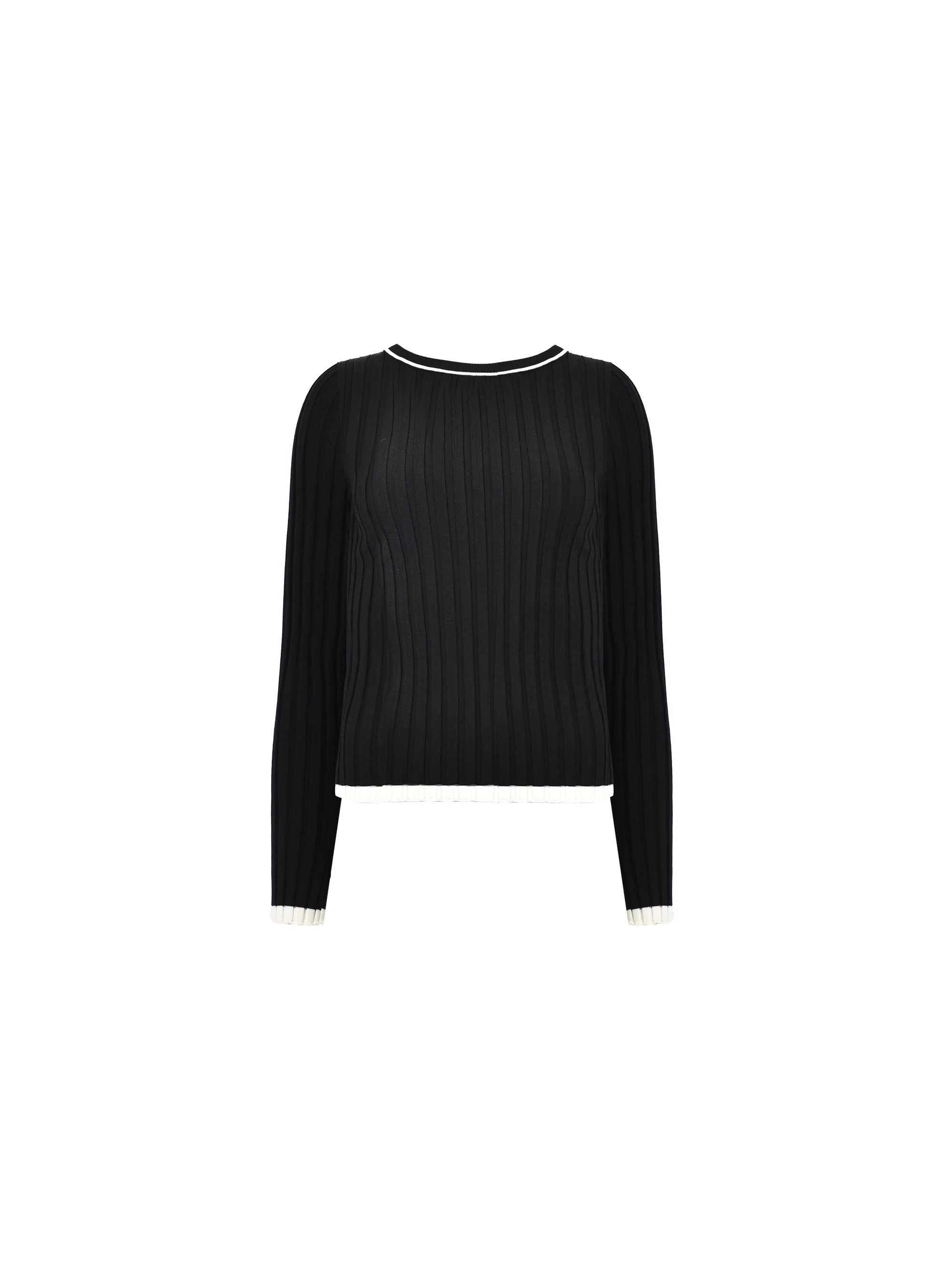 Black Rib Knit Contrast Neckband Top