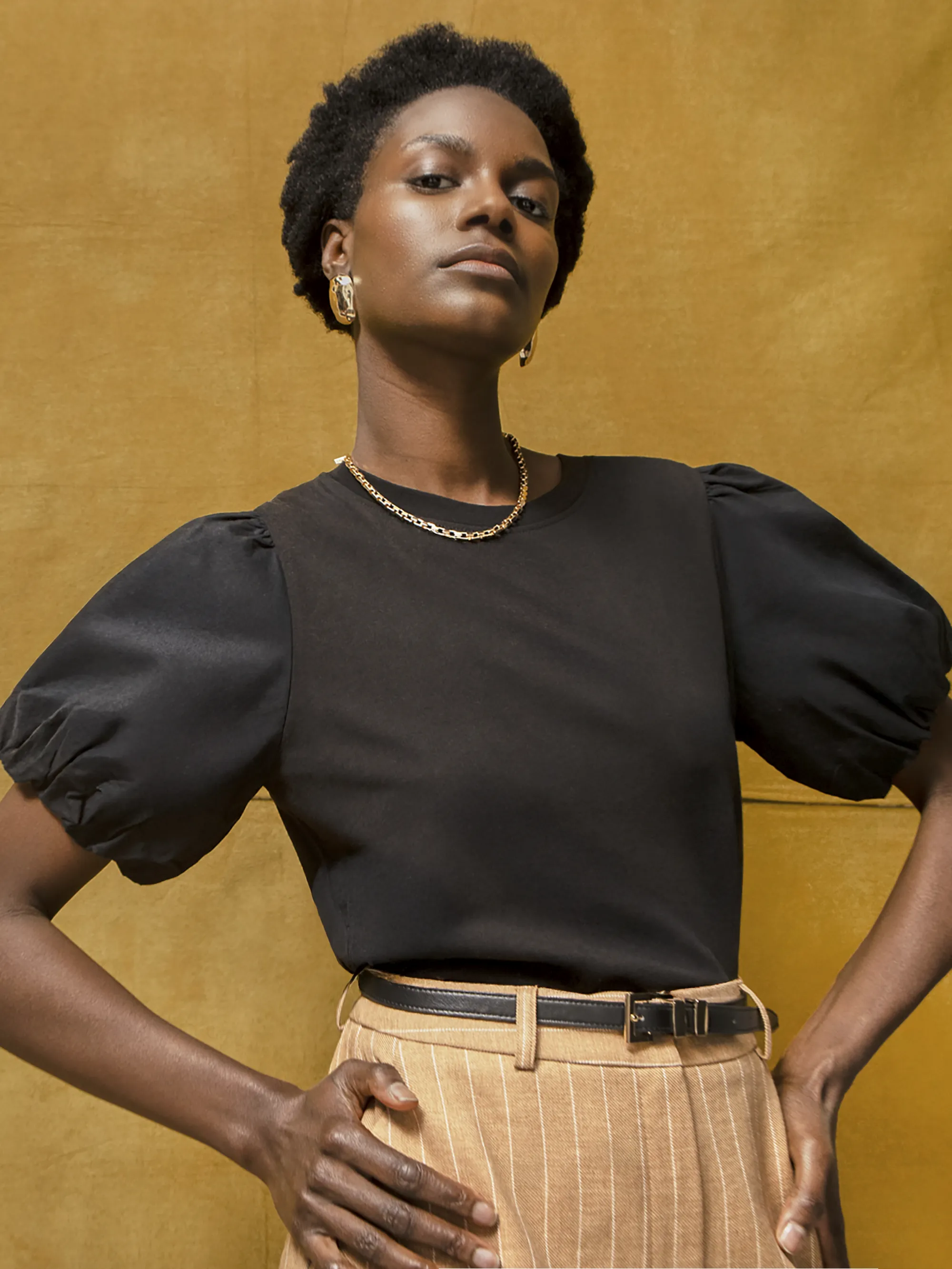 Black Pure Cotton Puff Sleeve T-Shirt