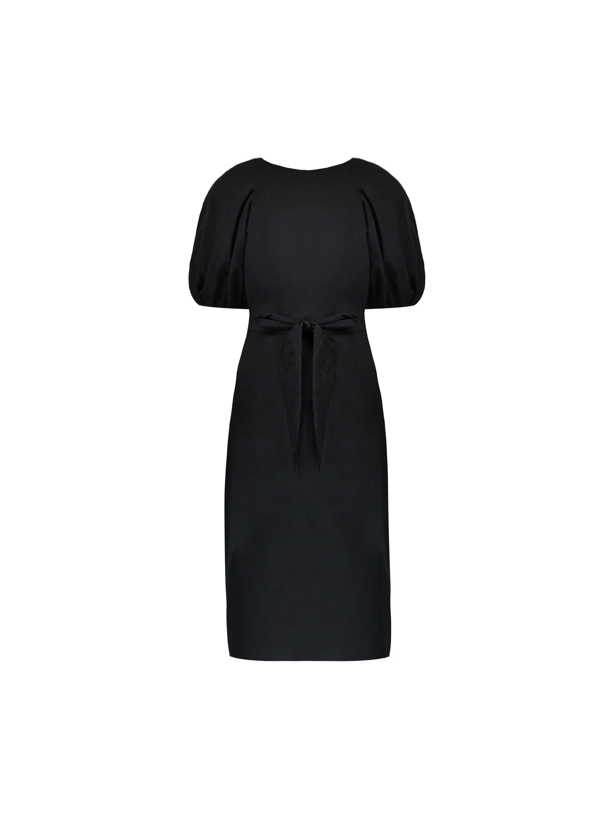 Black Puff Sleeve Tie Waist Sleeve Midi Dress