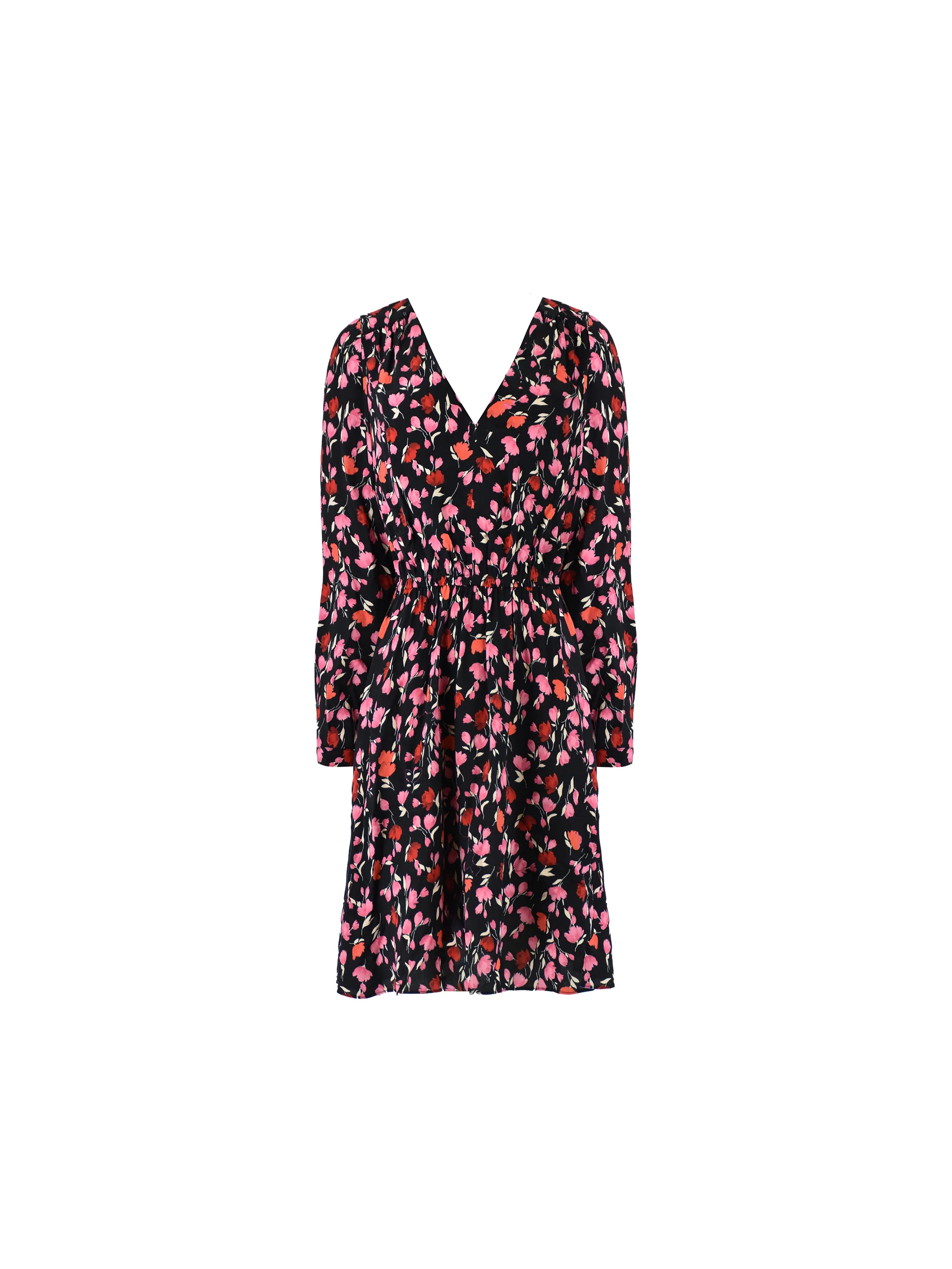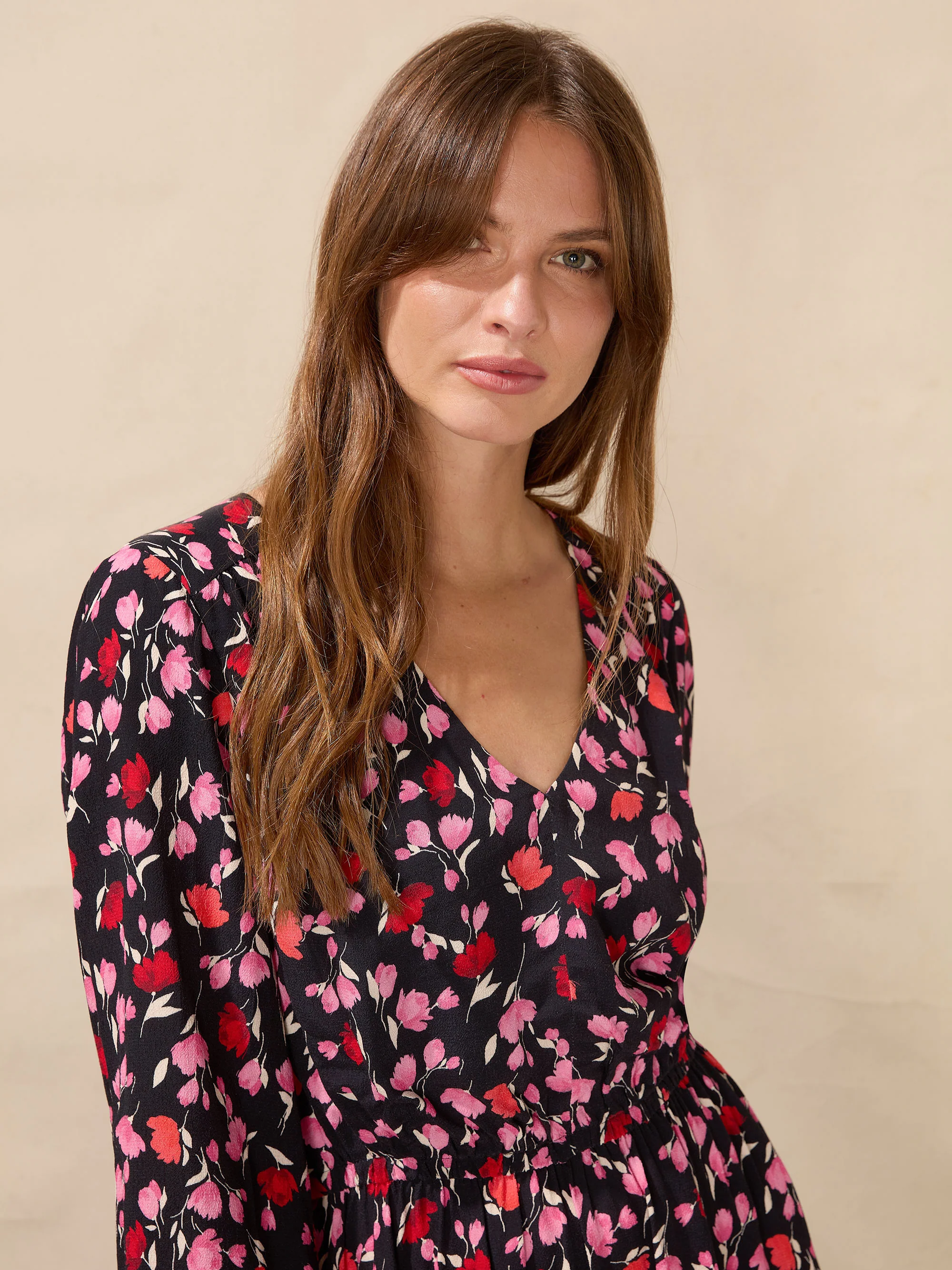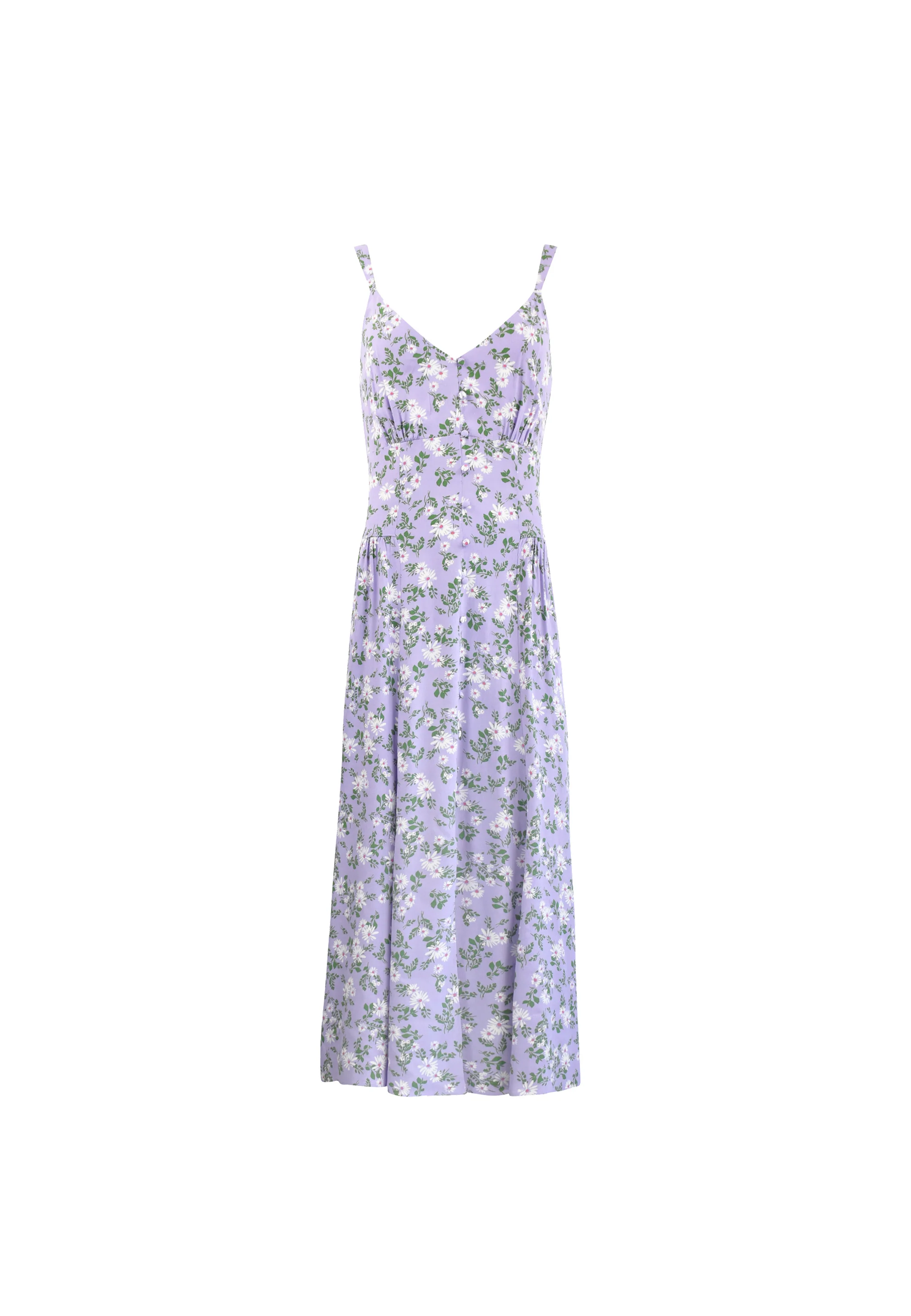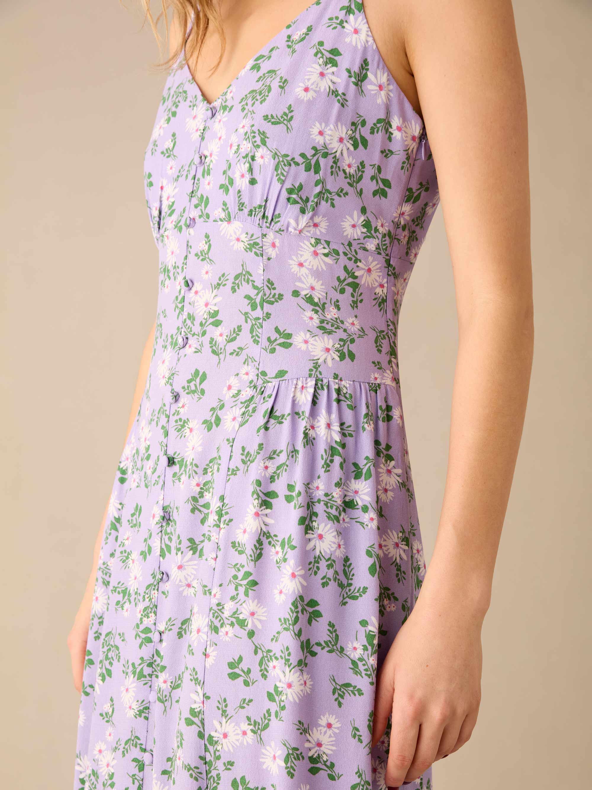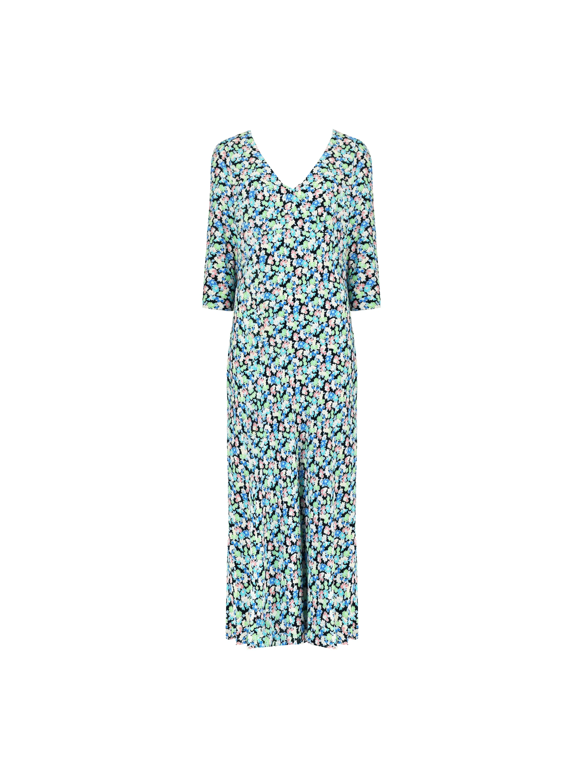 Multi Blurred Daisy Print V-Neck Midi Dress