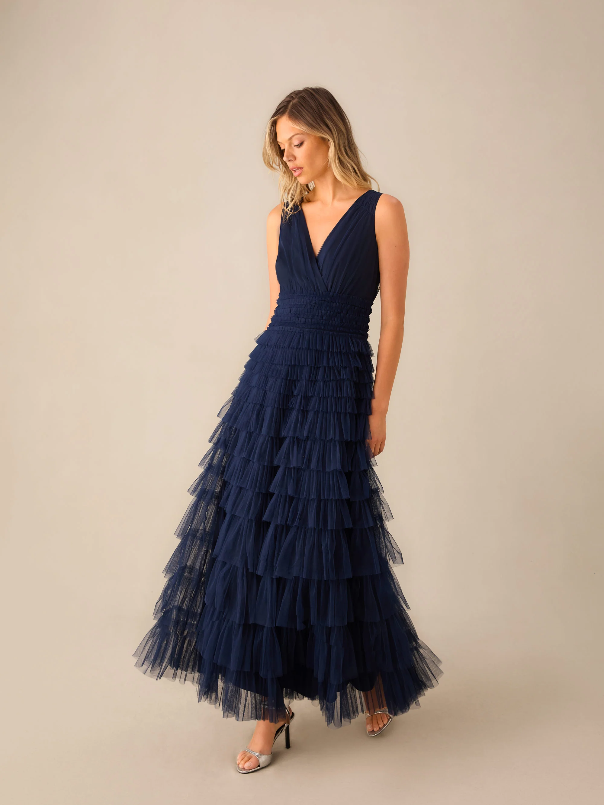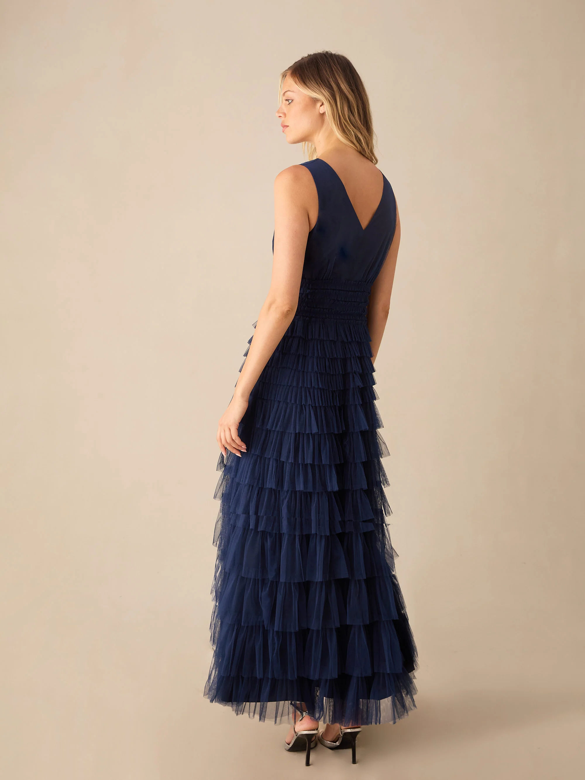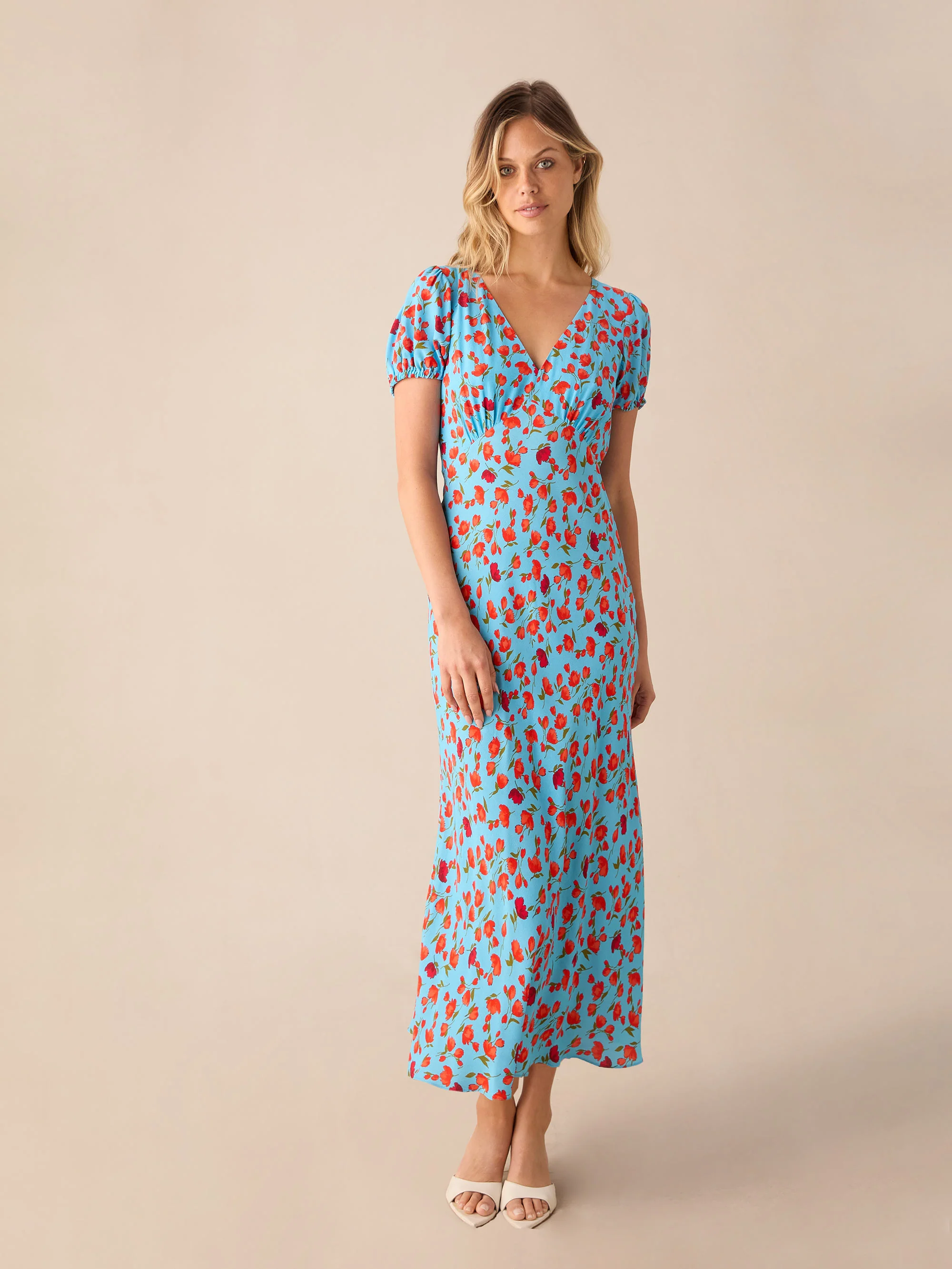 Kirstee Blue Floral Print Ruffle Cami Maxi Dress