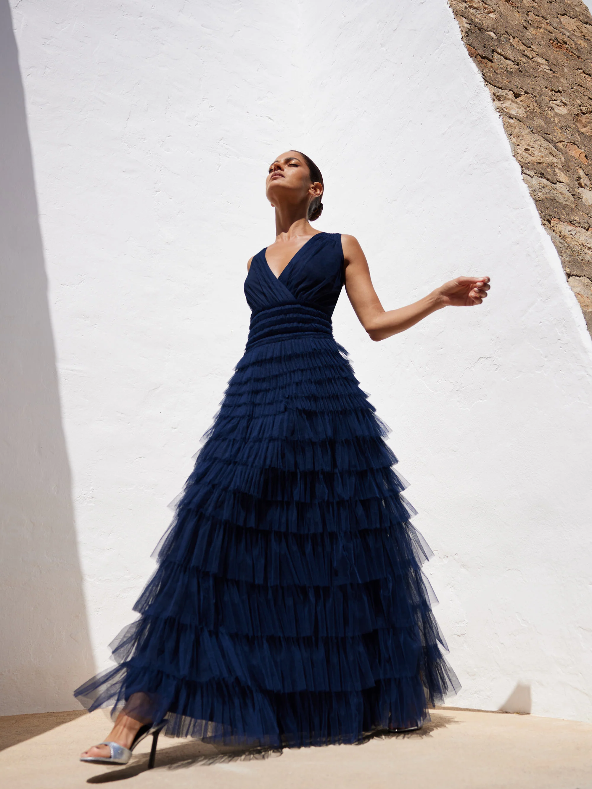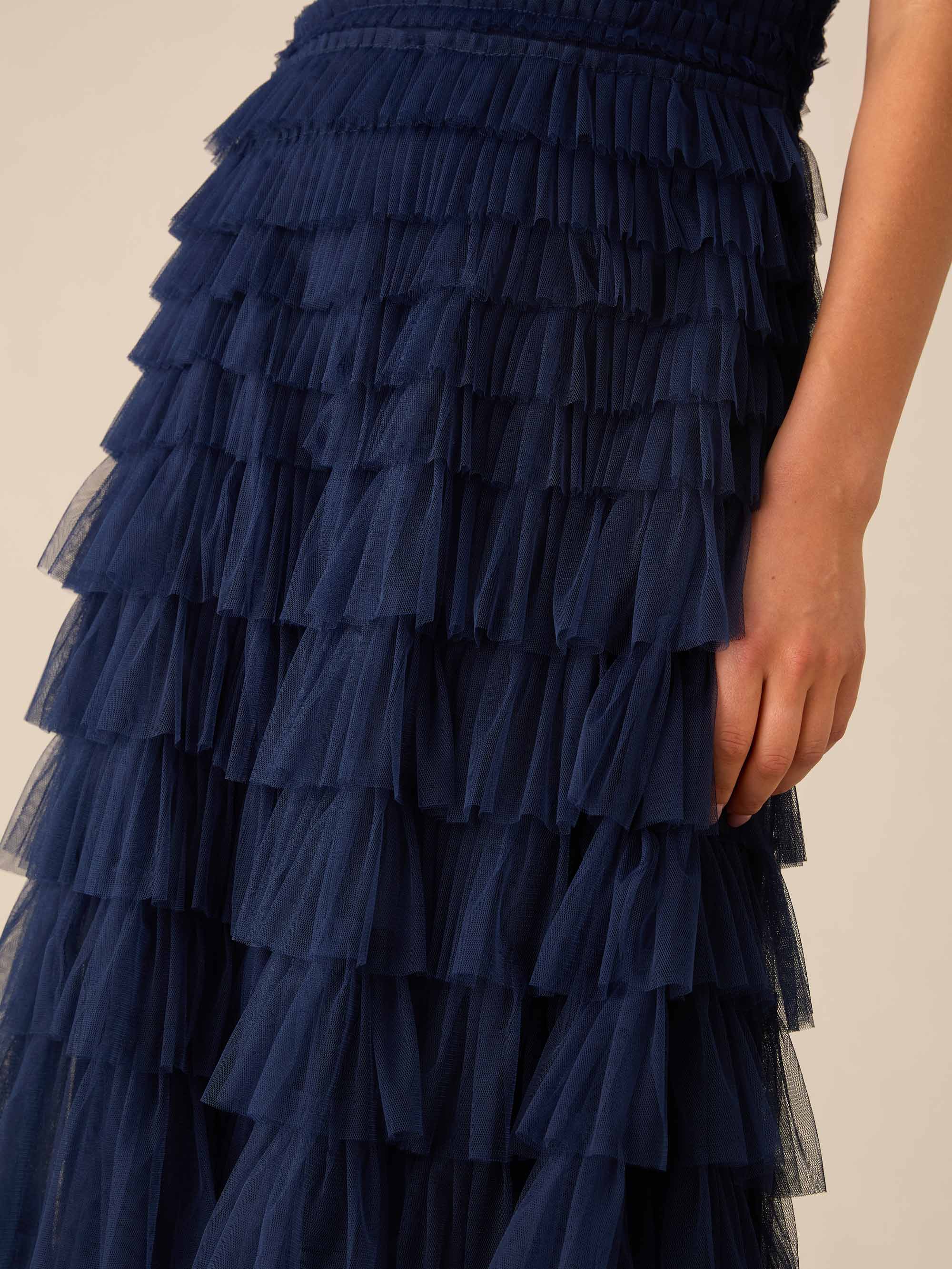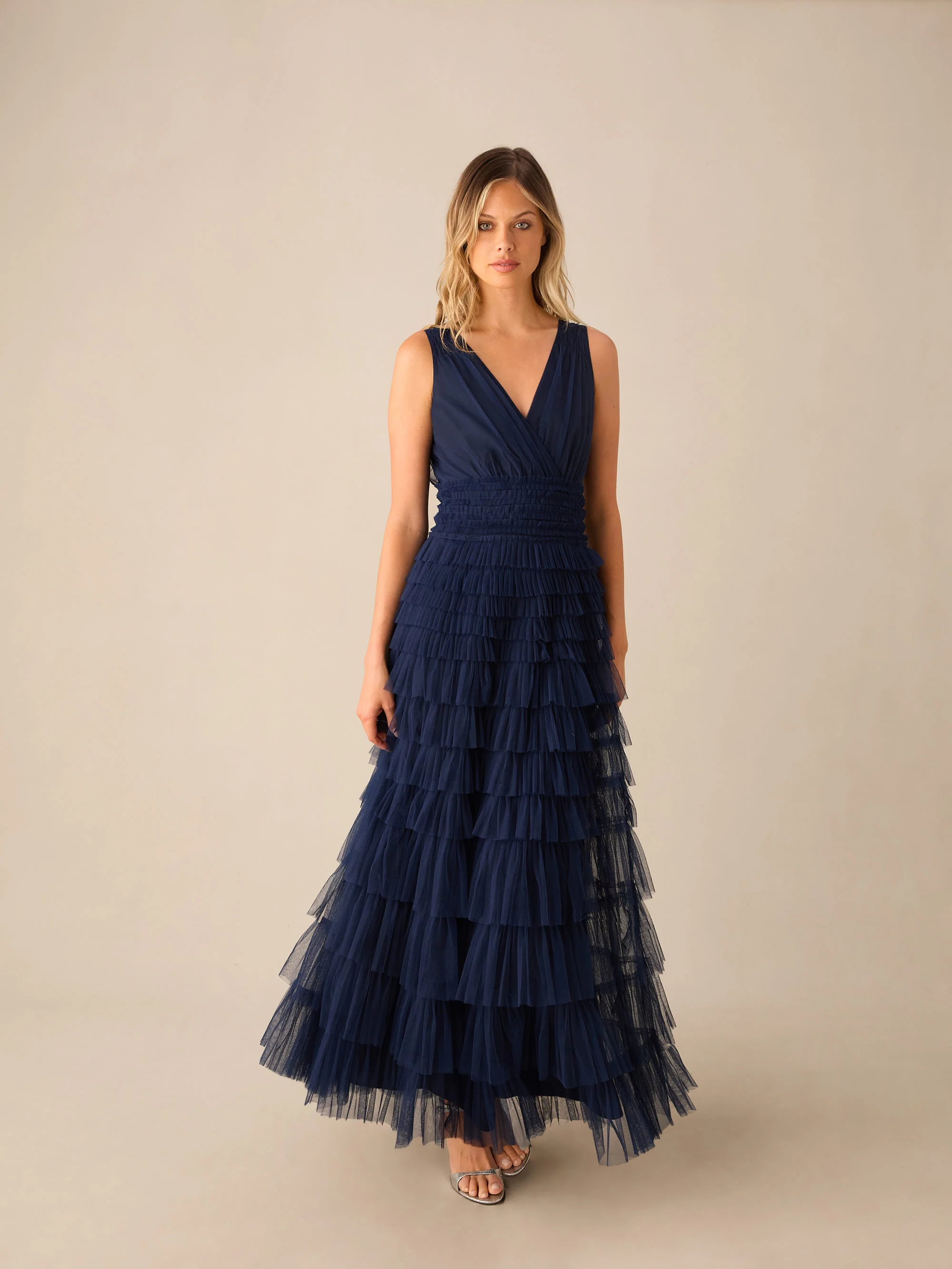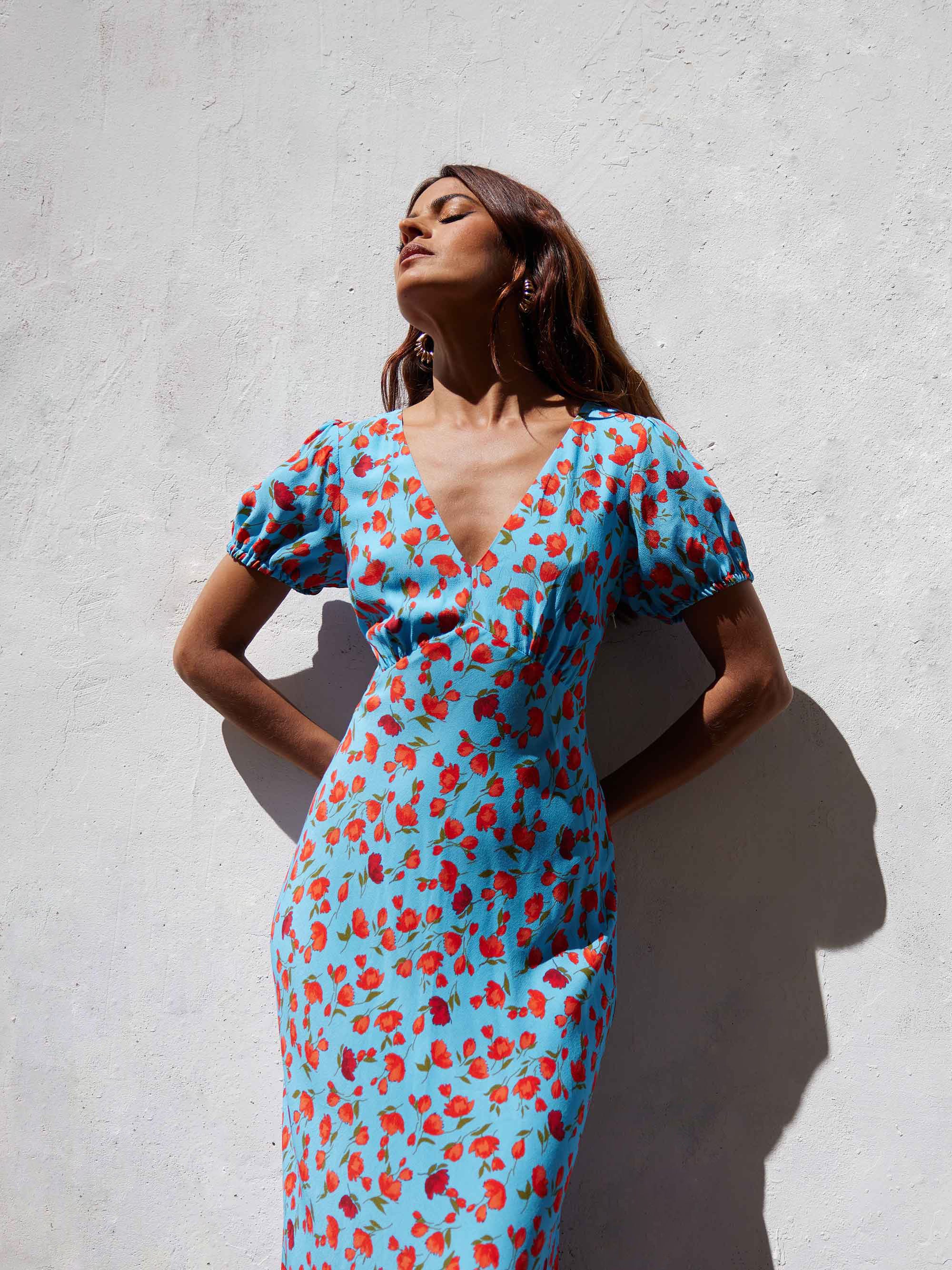 Kirstee Blue Floral Print Ruffle Cami Maxi Dress